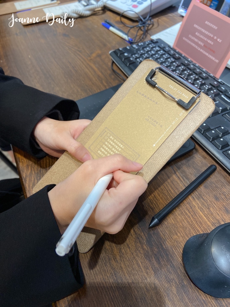 因是採預約制,先到櫃檯報到並寫顧客資料,接著會由人員帶領